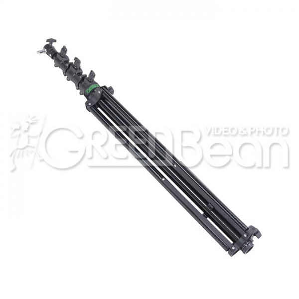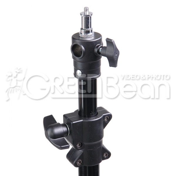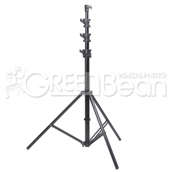 GreenBean Stand 380 GTX – высокая телескопическая стойка с воздушной амортизацией, предназначена для установки осветительного оборудования со стандартным креплением диаметром 5/8" или резьбой 1/4", 3/8" (в комплекте съемный крепежный адаптер). Возможна установка крепежного адаптера под углом 90˚. Максимальная высота 365 см, 4 секции, рекомендуемая нагрузка до 5 кг. Широко применяется в студиях, а также на выездных съемках для установки источников постоянного света, рассеивателей, «флаг-панелей» или фильтров. Прочная конструкция выдерживает большую нагрузку. Механизм воздушной амортизации обеспечит безопасную эксплуатацию и предохранит оборудование от повреждений. Секции надежно соединяются между собой винтовыми зажимами. Все элементы изготовлены из высококачественного алюминиевого сплава.