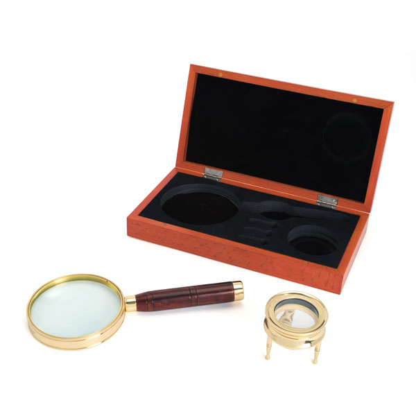 Телескоп Celestron Ambassador 50 TT + Набор луп Celestron Ambasador 50 TT классический телескоп рефрактор из прочной латуни на штативе из красного дерева. Телескоп оснащен 50-мм объективом и зум окуляром 15-45х, который позволяет легко изменить увеличение телескопа легким поворотам окуляра. Полностью стеклянная оптика позволит вам детально рассмотреть не только наземные объекты, но и небесные. Телескоп установлен на стильном азимутальном латунном штативе и подставке из красного дерева, что предает телескопу неотразимый вид, который украсит вашу гостиную или офис. Элегантный набор из двух луп в оригинальных дизайнерских оправах в красивой коробке из красного дерева. Этот комплект замечательно впишется в интерьер на рабочем столе в вашем офисе или дома. 90-мм лупа имеет увеличение 2х и заключена в оправу из латуни с деревянной ручкой, а настольная лупа имеет увеличение 4 крата и заключена в дизайнерскую оправу-подставку. Этот набор особенно подходит для любителей марок.