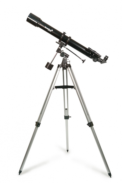 Levenhuk Skyline 70х900 EQ – это линзовый телескоп (рефрактор), отличающийся от модели Skyline 70х700 AZ сравнительно большим фокусным расстоянием 900 мм, а также экваториальной монтировкой, лучше приспособленной для наблюдения небесных объектов. Ахроматический объектив телескопа дает контрастное изображение, практически лишенное цветовых искажений. Большое фокусное расстояние особенно пригодится при наблюдениях Луны и планет, а также двойных звезд и компактных ярких скоплений и туманностей. Кроме того, при необходимости, телескоп может быть использован для наземных наблюдений (изображение зеркальное). Ахроматический объектив телескопа имеет просветляющее покрытие, которое обеспечивает максимальное светопропускание. Прочная и легкая алюминиевая труба установлена на экваториальную монтировку, оснащенную ручками тонких движений и допускающую установку электропривода часовой оси (приобретается отдельно). Такая монтировка имеет специальные координатные круги, с помощью которых, после несложной настройки, можно находить объекты по их экваториальным небесным координатам, а также сопровождать суточное движение объекта вращением только одной ручки. Тренога регулируется по высоте и имеет удобную полочку для принадлежностей, оптический искатель с 6-кратным увеличением позволит быстро навести телескоп на нужный участок неба. С телескопом поставляются 2 окуляра, имеющие поле зрения 52 градуса и фокусные расстояния 10 мм и 25 мм, и дающие с телескопом увеличение 90 и 36 крат. Линзы окуляров изготовлены из стекла и имеют многослойное просветление. Реечное фокусировочное устройство имеет посадочный диаметр под окуляры стандарта 1,25” (31,75 мм), и позволяет использовать с телескопом множество других, имеющихся на рынке, окуляров, помимо входящих в комплект. С помощью прилагаемой линзы Барлоу, увеличение телескопа может быть поднято до 180 крат. Фокусировочное устройство имеет стандартную Т-резьбу, которая, через дополнительное переходное кольцо, позволяет присоединять к телескопу зеркальную фотокамеру и производить съемку Луны и других ярких объектов. Серия телескопов Skyline создавалась для тех, кто хочет получить несложный в эксплуатации, транспортабельный домашний телескоп для визуальных астрономических наблюдений. Как начинающие любители астрономии, так и опытные наблюдатели, выбирающие телескоп для дома в дополнение к уже имеющимся, останутся довольны характеристиками и комплектацией телескопов этой серии.