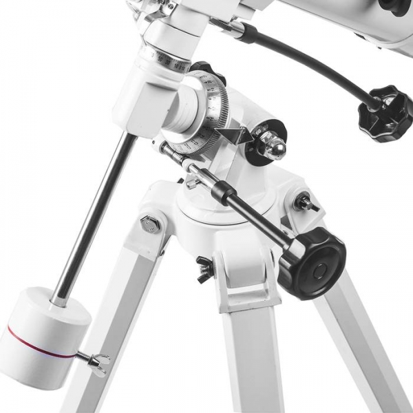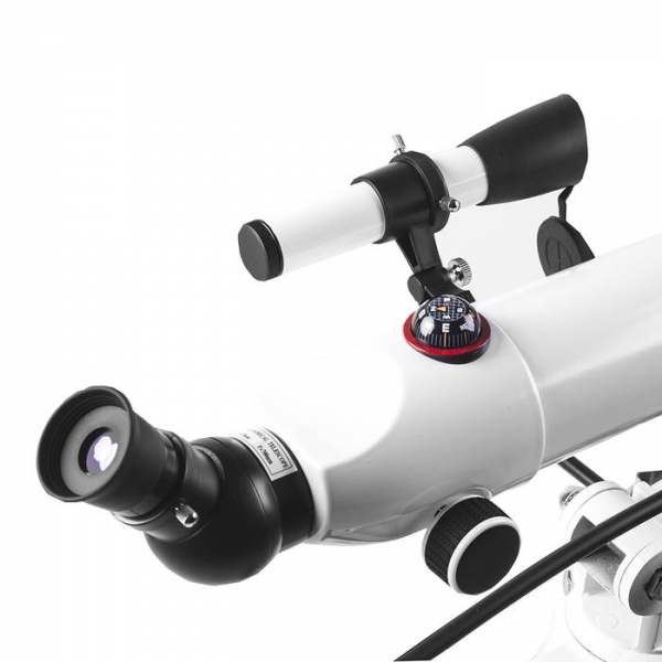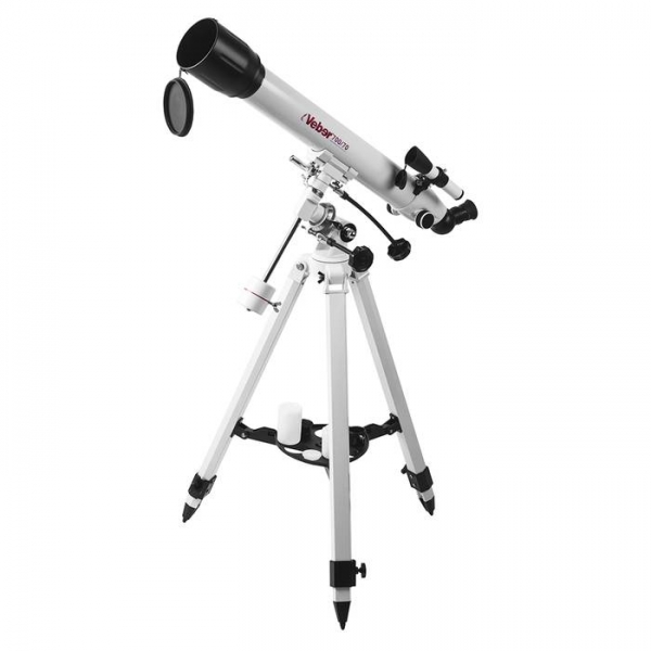Телескоп Veber 700*70 Эк. Белый - это линзовый телескоп (рефрактор), который дает четкое и контрастное изображение, хорошо подходит для путешествий. Просветленный ахроматический объектив с диаметром 70мм, собирает в два раза больше света, чем 50мм и позволяет наблюдать не только небесные, но и очень удаленные земные объекты. Картинка резкая, без окрашенности изображения по краю поля зрения. В этот телескоп вы сможете увидеть детали на дисках планет, кратеры Луны размером 5-6 км, многие туманности и звездные скопления (вплоть до 12 m звездной величины). Для земных наблюдений мы рекомендуем использовать окуляр PL-20, с которым увеличение телескопа будет 35x, при этом ближняя точка фокусировки составит 12,5 м. Обратите внимание, этот телескоп дает прямое (не перевернутое) изображение. Кроме того, наличие в окулярном блоке 45 градусной оборачивающей призмы Шмидта (а не диагонального зеркала, как в аналогичных моделях других фирм), делает изображение изображение не зеркальным (где левое и правое меняются местами), а таким, каким вы видите его невооруженным глазом. Для удобства наблюдения (из положения стоя или сидя), окулярную часть вместе с призмой можно поворачивать, 8 фиксированных положений. С помощью искателя (входит в комплект, увеличение 6х, крепится к телескопу) можно быстро навестись на цель наблюдения. Телескоп снабжен экваториальной монтировкой EQ2 без единой пластиковой детали с возможностью микрометрического наведения телескопа по обеим осям. Два слова о том, как ей пользоваться: одна из осей экваториальной монтировки устанавливается параллельно оси вращения Земли, благодаря этому суточное вращение неба может быть компенсировано вращением телескопа вокруг только одной оси монтировки, но в сторону, противоположную вращению Земли. Иными словами, "вести звезду" вы можете вращая только одну рукоятку наведения (более подробно см. инструкцию). Телескоп поставляется с алюминиевым штативом с возможностью регулировки высоты. Распорки для ножек служат не только для повышения устойчивости, но и в качестве подставки под полочку для аксессуаров (идет в комплекте). Сумка для переноски, в которую укладывается весь комплект, позволяет безопасно (для оптики и внешнего вида) транспортировать прибор для выездов на природу или при походах в гости.
