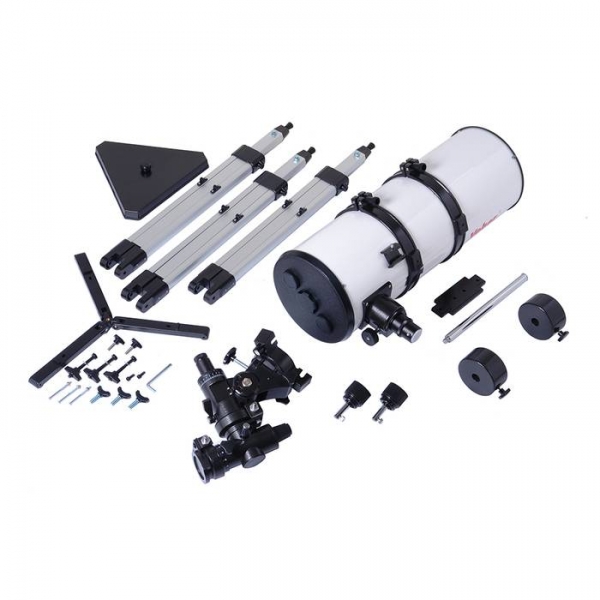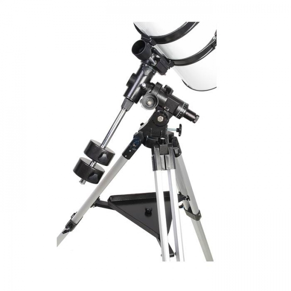 Самый "могучий" в линейке Ньютоновских телескопов Veber - и с точки зрения диаметра зеркала и с точки зрения монтировки. Мы рекомендуем его для серьезных и подготовленных. При такой апертуре его длина всего 520 мм, что делает прибор удобным для использования даже на балконе. В него можно увидеть лунные кратеры и образования диаметром около 2 км, 6-7 спутников Юпитера, даже спиральные ветви слабой галактики Водоворот, удаленный от нас на целых 35 миллионов световых лет! Однако: с окуляром PL25 вы получите увеличение 32х, с которым удобно вести наземные наблюдения. При этом ближняя точка фокусировки составит всего 10 м. Исполнение телескопа - самое профессиональное. Металлические: корпус, кольца крепления, заглушки, все детали окулярной части, включая подвижные и неподвижные части фокусера. Пластиковый только корпус 6-ти кратного искателя. Исполнение телескопа также можно назвать дизайнерским - настолько хорошо сочетаются черный блестящий корпус и окрашенные зеленоватой эмалью части монтировки (включая противовесы) и элементы штатива. Телескоп поставляется с профессиональной монтировкой немецкого типа EQ4 со встроенным искателем полюса (это оптическая трубка с перекрестьем, интегрированная внутрь монтировки). Мощный алюминиевый штатив снабжен металлическими распорками, на которые можно установить столик для аксессуаров. В общем, Veber 800/203 очень надежный, устойчивый телескоп для серьезных наблюдений (даже исследований!) с превосходным качеством изображения и весьма разумной ценой.