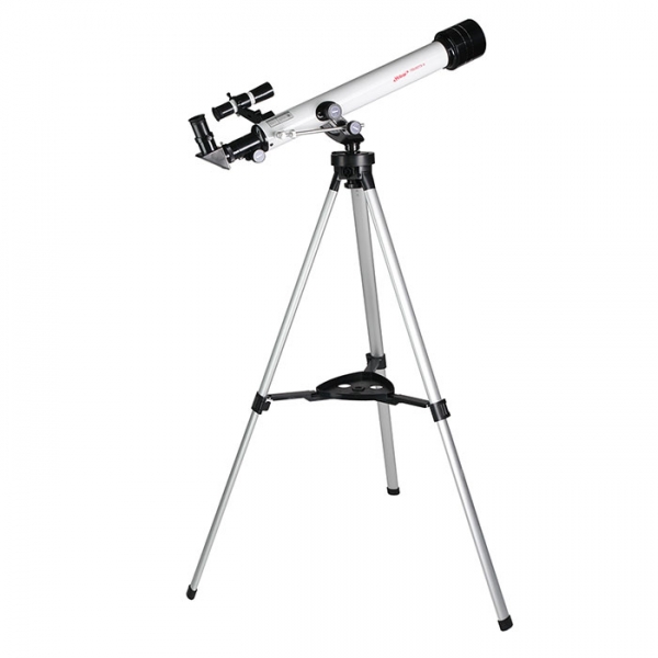Удобная Что можно увидеть в этот телескоп: кратеры Луны диаметром ок. 10 км, Венеру, Марс, проникающая способность этого телескопа — вплоть до 12,0 зв.вел. Труба телескопа снабжена съемной солнечной блендой, которая не только защищает при дневных наблюдениях от паразитных засветок, но и благодаря своей глубине (90 мм), предохраняет от повреждений объектив. На выходе телескоп дает прямое (не перевернутое изображение) а высокое качество картинки, обеспечивается целым рядом технических «ньюансов», таких как: ахроматический объектив, хорошее чернение трубы изнутри — для устранения паразитных переотражений, окуляры Кёльнера (не самой простой конструкции) и.т.д. Искатель с 6х увеличением для быстрого наведения на цель, расположен под углом 45° к окуляру и не мешает при наблюдениях.