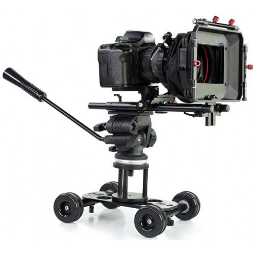 Это устройство представляет собой мини-тележку для съемки, позволяющую получать плавное движение в кадре. Тележка устанавливается на любую ровную горизонтальную поверхность. В отличие от других, более громоздких конструкций, при своих небольших размерах занимает меньше пространства. Быстро разбирается и собирается, легко настраивается.