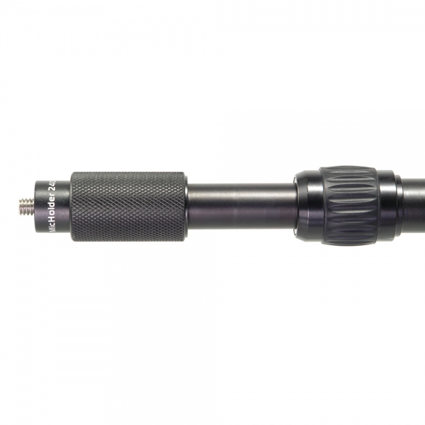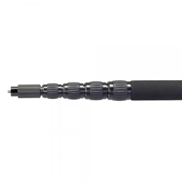 Удочка микрофонная GreenBean MicHolder 240 Алюминиевая телескопическая микрофонная удочка (бум) GreenBean MicHolder 240 выдвигается на длину 2,4 м из сложенного состояния длиной 64,5 см, вес 0,61 кг. На конце удочки находится винт с резьбой 1/4" (в комплекте переходник 3/8"). Конструкция содержит 5 сегментов, что облегчает выбор нужной длины, хранение и транспортировку. Секции выполнены из алюминиевого сплава с толщиной стенки 1 мм, алюминиевые цанговые зажимы с резиновыми накладками надежно фиксируют секции. Благодаря прецизионно сбалансированной конструкции секции выдвигаются очень плавно и фиксируются без люфтов. Внутри удочки предусмотрен канал для кабеля. Рукоятка из вспененного материала длиной 395 мм позволит комфортно удерживать удочку продолжительное время. В комплекте поставляется чехол с наплечным ремнем. Микрофонная удочка MicHolder 350C предназначена для использования в видео- и кинопроизводстве, позволяет поворачивать и направлять микрофон контролируемым образом, а также достаточно быстро передвигаться за источником звука.