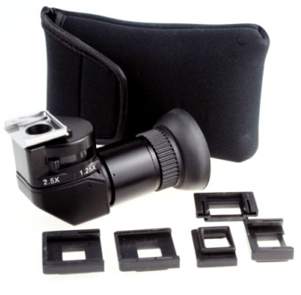 Угловой видоискатель Phottix Angle Finder 1.25х-2.5х для зеркального фотоаппарата позволяет получить удобный угол обзора. Применяется при репродукционной и макросъемке, а также для визирования с пояса. Встроенный наглазник защищает от паразитного бокового света. Имеются диоптрийная настройка видоискателя и 2.5-кратное оптическое увеличение центральной зоны видоискателя. В комплекте 5 окулярных переходников для различных камер Canon, Nikon, Minolta, Fuji, Leica. |