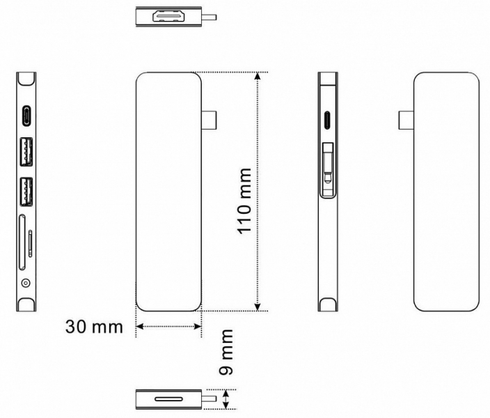 USB-хаб HyperDrive Solo GN21D для MacBook Hyper HyperDrive Solo представляет собой функциональное устройство, при помощи которого можно значительно расширить количество интерфейсов в ноутбуке. Модель подключается при помощи USB-C и имеет 7 различных разъемов. Hyper HyperDrive Solo обладает стильным дизайном, достигнутым благодаря алюминиевому корпусу, что также обеспечивает высокую прочность устройства. Интерфейсы расположены таким образом, чтобы одновременное задействование каждого порта не вызывало трудностей. Модель станет отличным решением для новых моделей ноутбуков, в которых малое количество встроенных портов и имеется разъем USB-C. Hyper HyperDrive Solo позволяет значительно расширить возможности ноутбука, добавив ему 7 различных портов, используя при этом лишь один разъем USB-C. Использование данного разъема гарантирует высокую скорость работы и передачи данных. Концентратор дает возможность подключать внешние мониторы (HDMI), наушники или акустику (mini-jack 3.5mm), карты памяти SD и MicroSD, а также различную периферию (USB 3.1, USB-C).