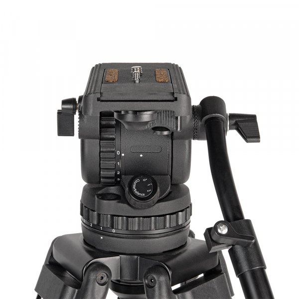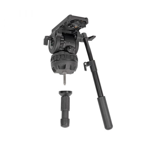 Съёмная голова с жидкостным демпфированием и регулируемой системой контрбаланса поворачивается на 360˚ по горизонтали, наклоняется вперёд и назад на углы от -75° до +90°, имеет независимые фиксаторы панорамирования и независимый регулятор вертикального и горизонтального демпфирования. Регулирование демпфирования в обеих плоскостях осуществляется кольцами с нанесённой цифровой шкалой от 0 (демпфирование отсутствует) до 3 (максимальное усилие). Усилие контрбаланса осуществляется регулятором, расположенным на корпусе головки. Усилие можно изменить ступенчато, на регуляторе есть соответствующая маркировка: 0 — контрбаланс отключен, 1 — минимальное усилие, 2 — максимальное усилие. Голова изготовлена из алюминиево-магниевого сплава. Благодаря жидкостному демпфированию все движения происходят плавно и без рывков. Дополнительно голова оснащена предохранителем площадки. Штатив оснащен балансировочной площадкой. Площадку можно смещать вперёд и назад. Ход площадки 60 мм. На быстросъёмной площадке предусмотрены винты с резьбой 1/4" и 3/8“ (входят в комплект), подпружиненный штифт и противоскользящая вставка.