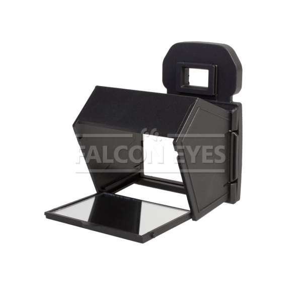 LCD-5D2 – набор видоискателей для ЖК монитора камеры Canon 5D II, состоящий из увеличивающего изображение окуляра с наглазником и углового видоискателя. Устройство позволяет вести съемку на открытом освещенном пространстве и предотвратить нежелательные засвечивания кадра и блики. Комплект находит широкое применение во всех сферах фотографии, где необходима удобная работа с ЖК монитором камеры – макросъемка, предметная съемка, видеосъемка и т.д. Насадки из набора Falcon Eyes LCD-5D2 устанавливаются на монтажную рамку, которая крепится к оптическому видоискателю камеры. Первая насадка представляет собой видоискатель с 3х кратной линзой и резиновым наглазником, блокирует нежелательные блики от внешнего освещения и увеличивает изображение, данная насадка часто используется в системах стабилизации на основе рига. На окуляре насадки находится кольцо диоптрийной коррекции, это поможет настроить изображение под индивидуальные особенности зрения. Второй насадкой является угловой видоискатель ЖК монитора. С помощью системы зеркал позволяет повернуть изображение под углом 90˚ и увидеть отражение ЖК-монитора непосредственно над камерой. Это удобно при макросъемке, съемке с крайних нижних точек (когда трудно получить доступ к экрану низко расположенного фотоаппарата) и съемке событий происходящих сверху - птицы в полете, самолеты, парашютисты и т.д. В комплекте два пластиковых футляра для хранения комплекта.