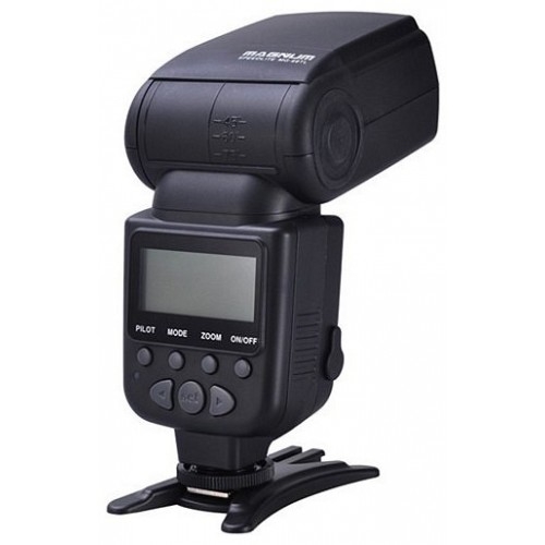 Функции: Отличная мощность. С ведущим числом 48 вспышка вспыхивает сильнее и дальность ее действия гораздо дальше. Пять режимов вспышки. MG-68TL включает режимы: TTL/M/Strobe/S1/S2, которые легко переключаются одним нажатием кнопки. Если вам нужен режим TTL, ручной, стробоскопический или ведомой вспышки, Magnum MG-68TL моментально об этом позаботится. Точная регулировка яркости. MG-68TL имеет много уровней мощности вспышки. Просто нажмите левую или правую кнопку для регулировки яркости. В диапазоне от 1/128 до полной мощности с ведущим числом 48. Есть также шаг в 1/3 между уровнями. Быстрая перезарядка. Время для перезарядки батарей до полной мощности в MG-68TL занимает всего 4 секунды, что позволяет сделать больше кадров и сэкономить больше времени для съемки. Оптический сенсор. MG-68TL может срабатывать от света другой вспышки на расстоянии до 20-30 метров в помещении и до 15-20 метров на открытом воздухе. Режим энергосбережения. MG-68TL переходит в спящий режим автоматически при бездействии в течении 50 секунд, что позволяет экономить заряд энергии батареи и дает больше времени для съемки. Порт синхронизации. Позволяет вспышке срабатывать от радиосинхронизатора Trigmaster на максимальной скорости синхронизации камеры. Внешний порт питания. При подключении к внешнему источнику питания (такому, как внешний батарейный блок), вспышка может перезаряжаться на полную мощность всего за 2 секунды. Защита от Перегрева. Чтобы предотвратить всшышку от повреждения, MG-68TL переходит в режим защиты, если она вспыхивает слишком часто. При использовании неприрывной вспышки, яркость должна быть установлена на уровне ниже 1/4 мощности.