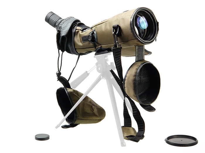 Многослойное просветление оптики, качественное оптическое стекло BAK-4 и прецизионная индивидуальная сборка каждой трубы-три кита качества, благодаря которым изображение резкое, четкое, сочное-без искажений и окрашенности мелких деталей картинки на краях поля зрения. Труба имеет покрытие soft-touch, придающее ощущение «обрезиненности», поворотное кольцо с площадкой (резьба на площадке ¼«) служит для установки трубы на фотоштативе в удобное положение для наблюдателя (можно смотреть и сидя и стоя). Многофункциональный полужесткий кофр-чехол с ремнем (для переноски) обеспечивает доступ к кольцам настройки. При необходимости (неожиданный дождь, длительное нахождение на открытом воздухе) защитить трубу от проникновения влаги можно за несколько секунд путем присоединения откидных (съемных)частей футляра. При этом трубу со штатива можно не снимать. Выдвижная бленда служит для защиты от косых солнечных лучей. Следует помнить, что прибор является светосильным, с высоким светопропусканием, поэтому ни в коем случае не следует направлять его прямо на солнце. При необходимости вести фото-видеосъемку возможно использование кронштейна или кольца T2 (в комплект не входит).